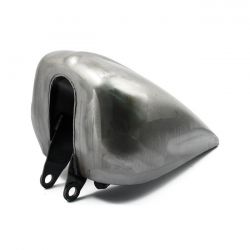 Resembles a Sportster tank from a distance, but it isn’t. With the ribbed center it is a true classic custom gas tank that complements the simplicity of clean minimalistic customs. Capacity 2.35 gallon and includes mounting hardware. Takes stock style gas caps. Note: For 84-99 Softails the dash mount must be removed and rear section mount hole modified. Note 2: It is advised to pressure test seal and test fit all tanks before tanks are painted and installed. Some tanks are painted, but this coat is applied for rust prevention during storage only.