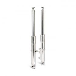 Single disc. With chrome plated aluminum fork sliders. Complete kit with hard chromed fork tubes and aluminum lower slider assemblies with all internals and forkplugs. Can be used as stock replacement for 84-99 FXST models with single front caliper.