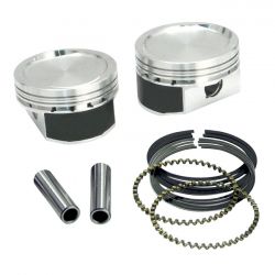 Used to convert a stock 883cc or 1100cc Sportster to 1200cc. Gives 1:9.5 CR with stock heads. Requires boring of stock cylinders to the stock 3-1/2″ 1200 bore only (see note). Other modifications are not required. Works with stock 883 cylinder heads and cylinders, stock cases do not require boring. Kit comes complete with forged pistons, rings, wrist pins and clips. Note: 1200cc cylinders must be purchased for 04-22 883 XL models. Stock cylinder liners of 04-22 XL models are too thin to bore to 1200 size. Note: In any and all applications the technician must be able to judge components for their suitability in combination with the other engine components, prior to installation. It is of importance that a knowledgeable mechanic will install & make adjustments as required. The rider must follow standard break-in and riding procedures for overhauled engines
